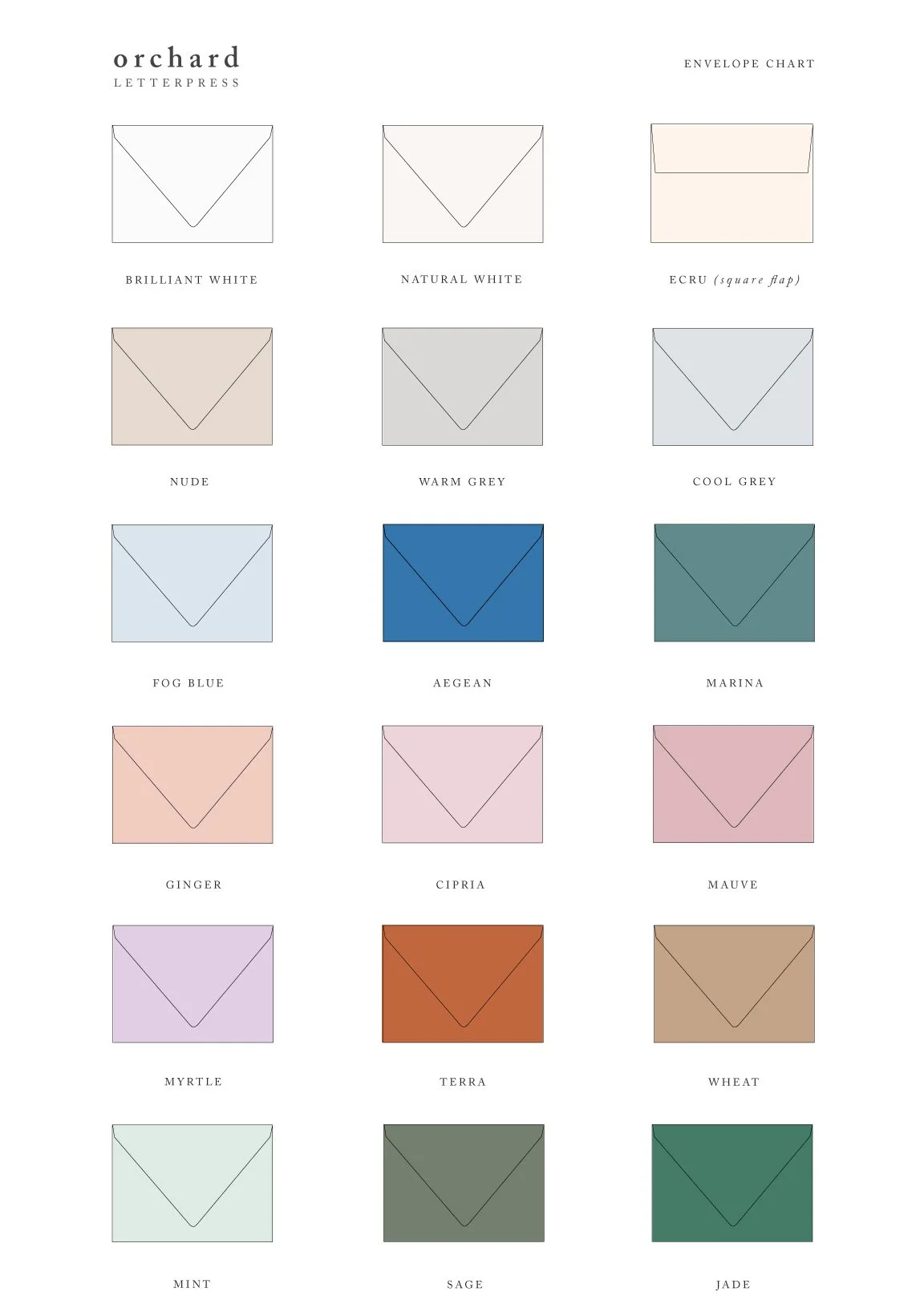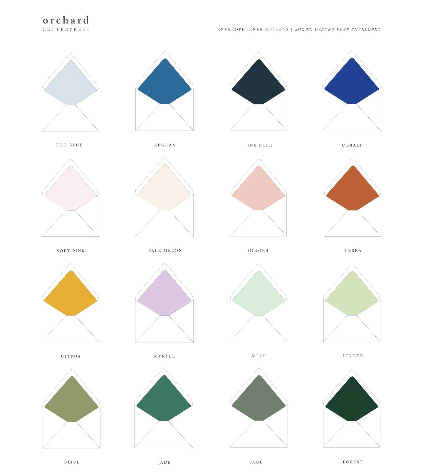 COLOR CHART FOR INK, ENVELOPES + ENVELOPE LINERS